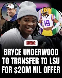 According to the official announcement, Bryce Underwood has agreed to join the LSU Tigers in a New Insurance Deal (NIL) worth $20 million – the largest in the history of American college football.
